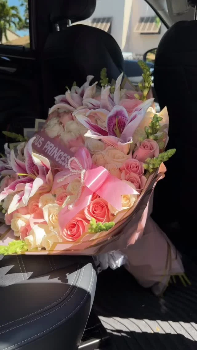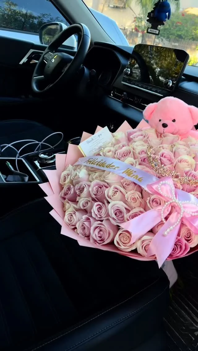 50 premium pink roses paired with 2 lillies, wrapped in waterproof luxury paper for a flawless finish. Please note: All orders must be placed at least 24 hours in advance to ensure availability and quality.